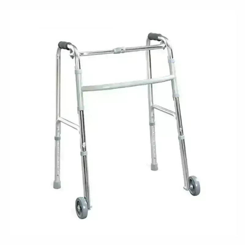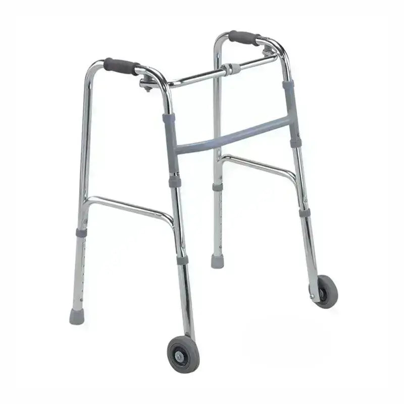 مشاية بعجل رباعية الأرجل قابلة للطي ومصممة من الألمنيوم المقاوم للتآكل والصدأ.
