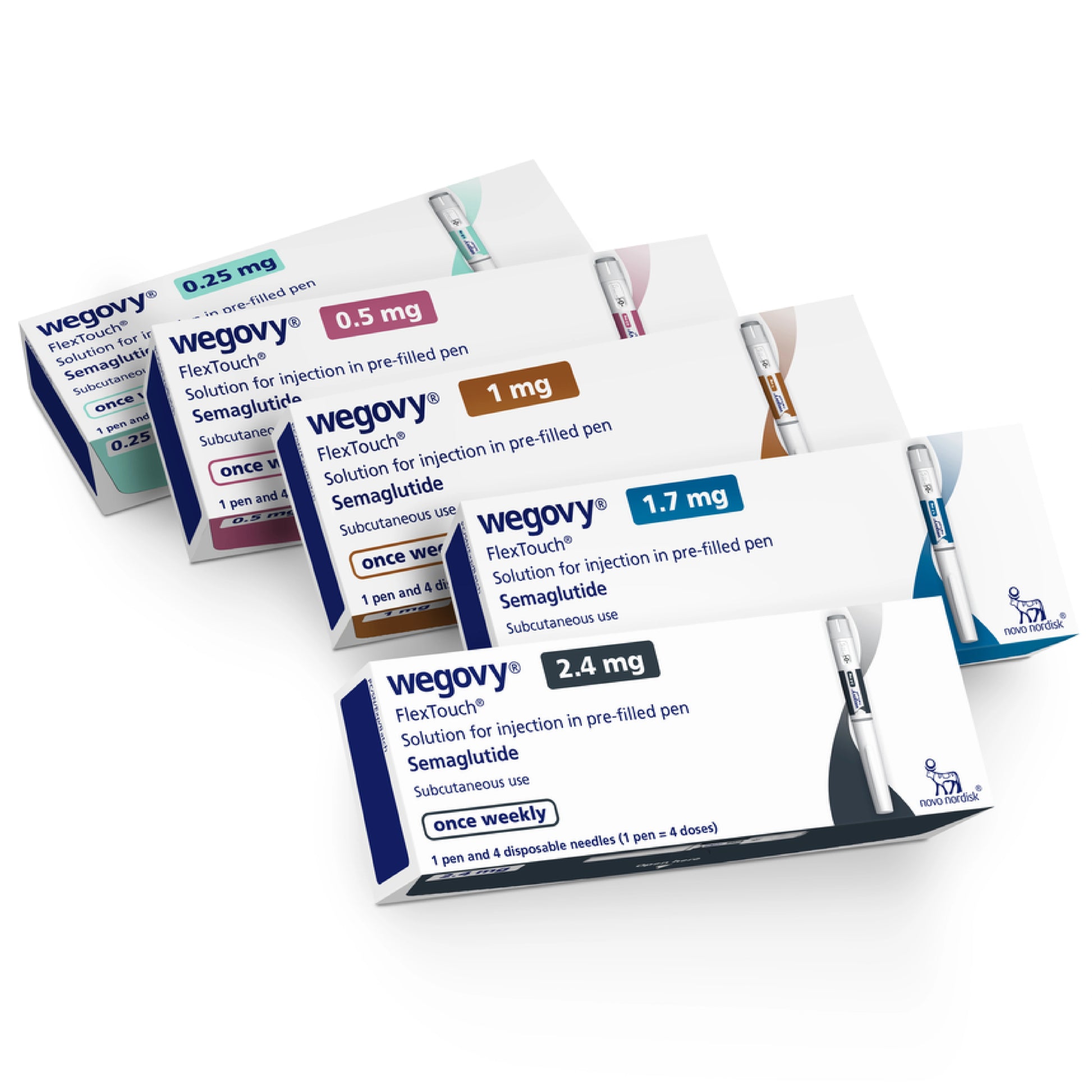 Wegovy is administered using a prefilled FlexTouch pen designed for simple once-weekly self-injection. Treatment begins with a low starting dose and is gradually increased every 4 weeks until the recommended maintenance dose of 2.4 mg weekly is reached to improve tolerability and long-term effectiveness.