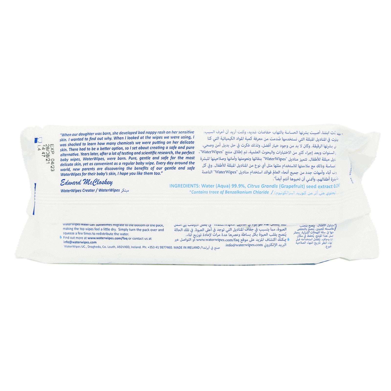 Every wipe uses purified, filtered, and softened Irish water.