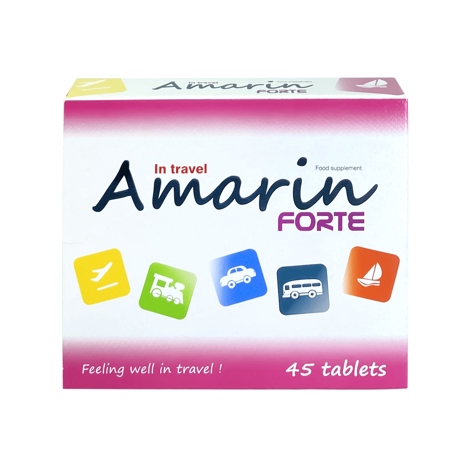 AMARIN Forte in the form of easy-to-swallow, small, vitamin, herb tablets is recommended for supplementation by adults and children poorly tolerating travel by vehicles and craft: cars, buses, trains, ships, planes