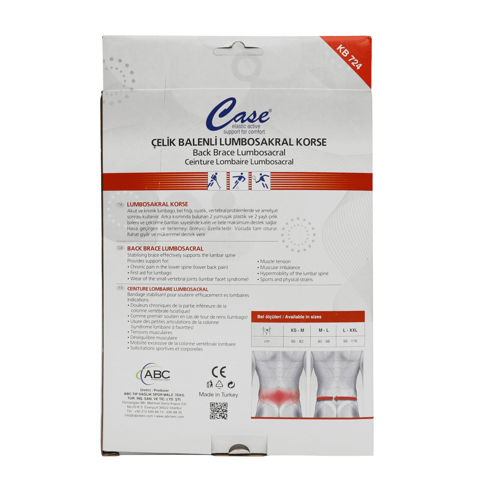 Case Back Brace Lumbosacral Gray KB 724 L-XXL