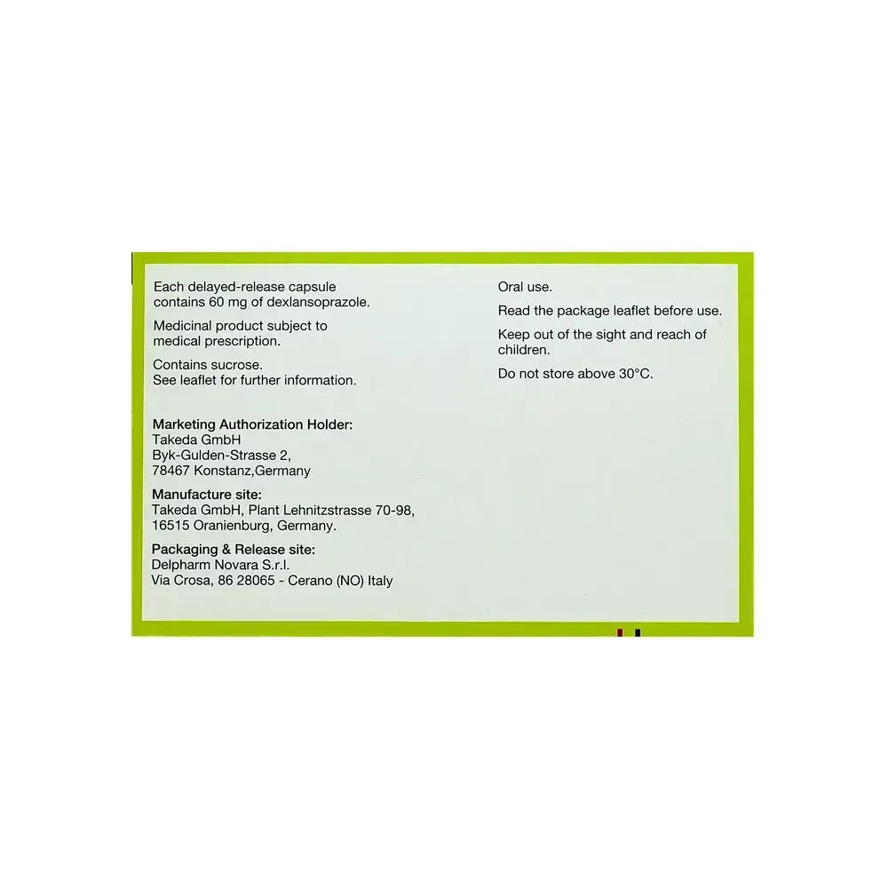 Dexilant 60 mg capsules are capsules used to treat stomach and esophagus problems resulting from increased stomach acidity.The capsules contain the active ingredient Dexlansoprazole, which belongs to the proton pump inhibitor responsible for acid secretion in the stomach.