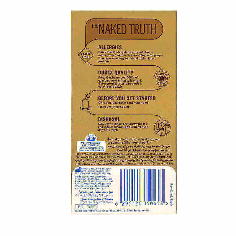 Durex real feel condoms are made with polyisoprene for a natural skin feeling, this is a non-latex material so they are suitable for people who have an allergy to natural rubber latex proteins.Polyisoprene is also a softer material that gives a better fit, so can feel like you’re not wearing a condom at all.