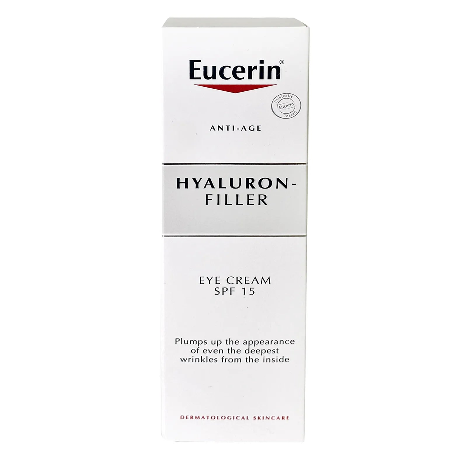 Eucerin hyaluronic filler eye cream is an Anti-wrinkle eye cream with SPF 15 and UVA protection to target and treat eye area wrinkles, ophthalmological tested.