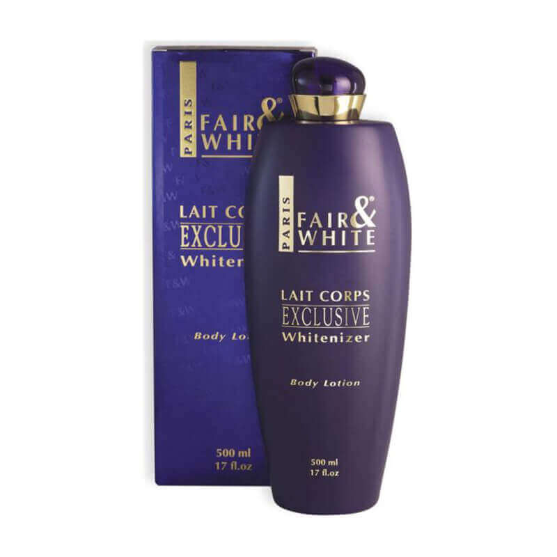 Fair and white whitening body lotion contains glycolic acid that evens skin tone by exfoliating your skin's surface and removing dead skin cells and helping reduce the appearance of hyperpigmentation. The glycerin in Fair and white whitening body lotion helps to increase skin hydration, in addition to coumarin that firms skin.