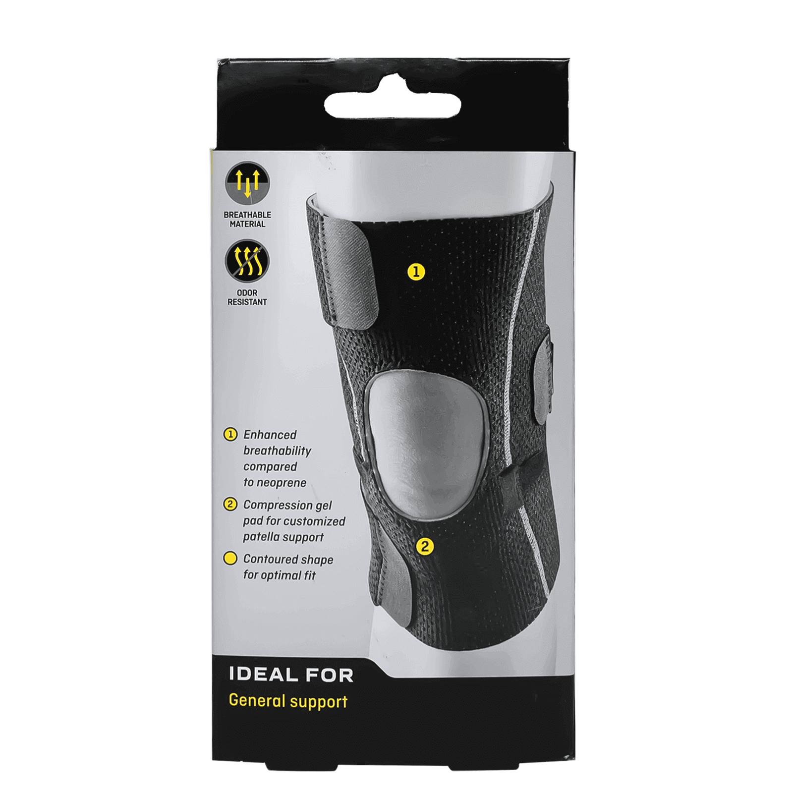 Comfortable and flexible knee support for injured and weak knees.The gel cushioning and Patella shield provides extra support.
