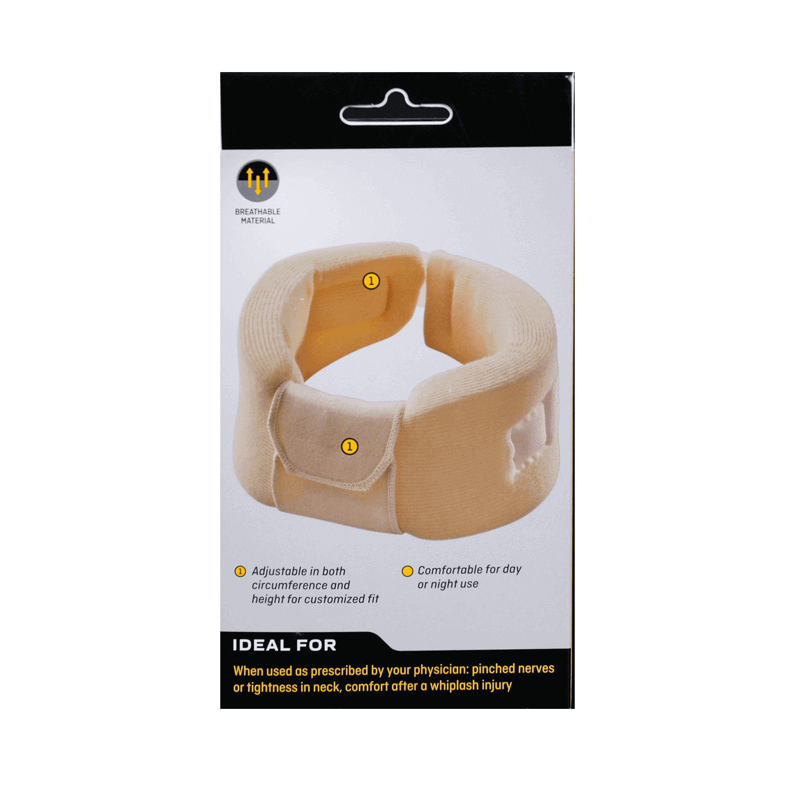 Futuro Neck Cervical Collar helps to support the injured neck, provide comfort after whiplash, and relieve mild neck pain and stiffness.