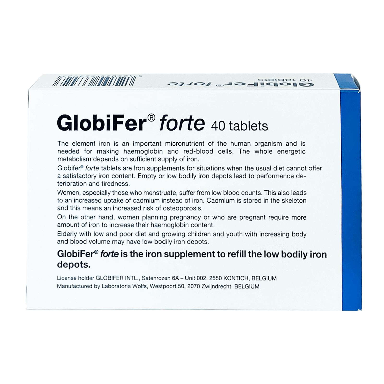• Globifer forte tablet is an iron supplement to refill the low bodily iron depots.
