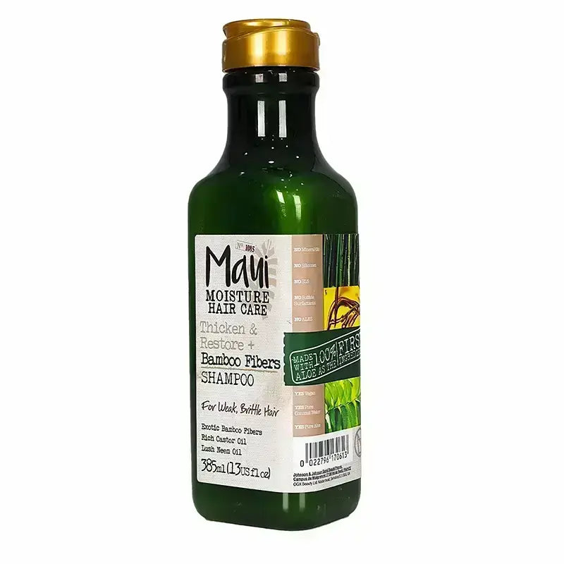 Maui Bamboo Fibers Shampoo is enriched with natural extracts of Bamboo fibers, Castor oil, and Neem oil for thicker, more attractive-looking hair.Maui Shampoo repairs damaged brittle and excessively styled hair by rebuilding and strengthening damaged hair follicles as well as increasing their resistance to damage.