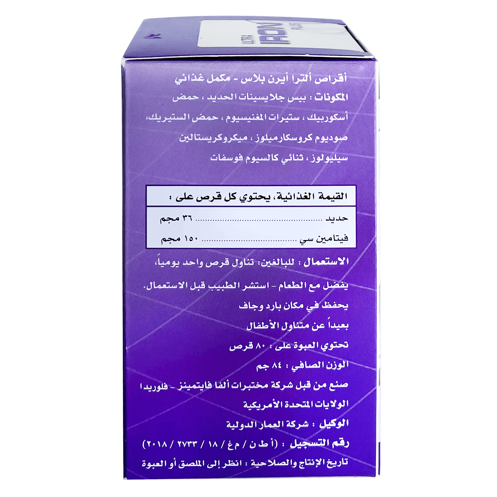 Mega Pharma Ultra Iron Plus Tabs 80'S, a vital mineral for the proper functioning of the body, with the important vitamin C that helps in absorption, the dosage required to meet the daily needs of the organism in 100%.