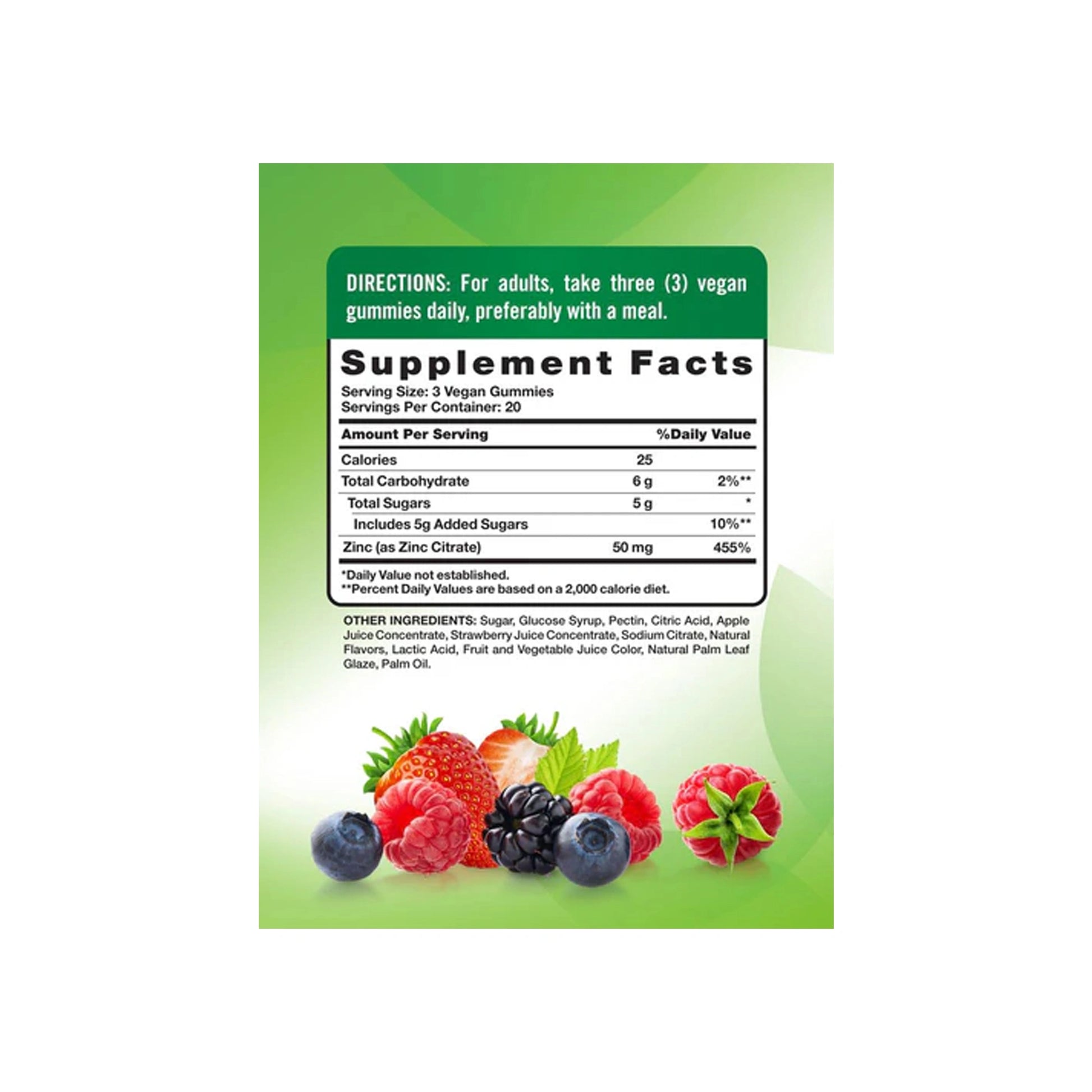 Nature's Truth Extra Strength Zinc 50 mg Mixed Berry Flavor 60 Vegan Gummies