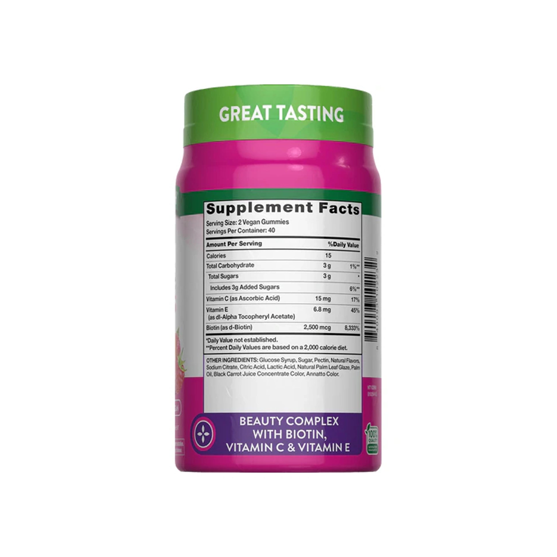 Biotin in the composition of the Nature's Truth Hair Skin & Nails Gummies helps to strengthen and promote healthy hair and nails while vitamin C helps to support the production of collagen which is important for healthy skin.