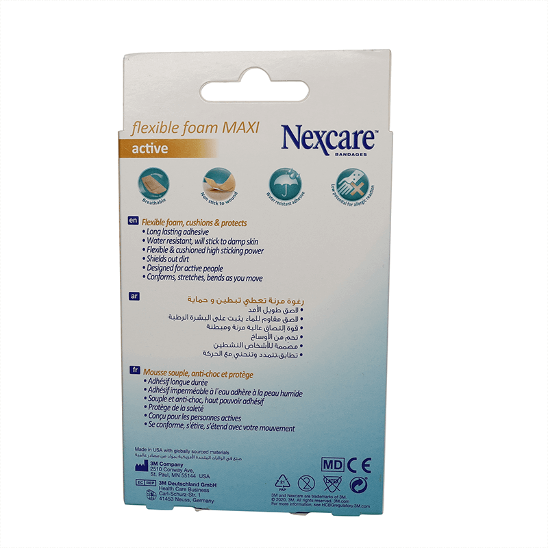 Nexcare Active Flexible Foam Plasters are designed for active people with 360-degree protection shielding out dirt and sticking to wet skin.