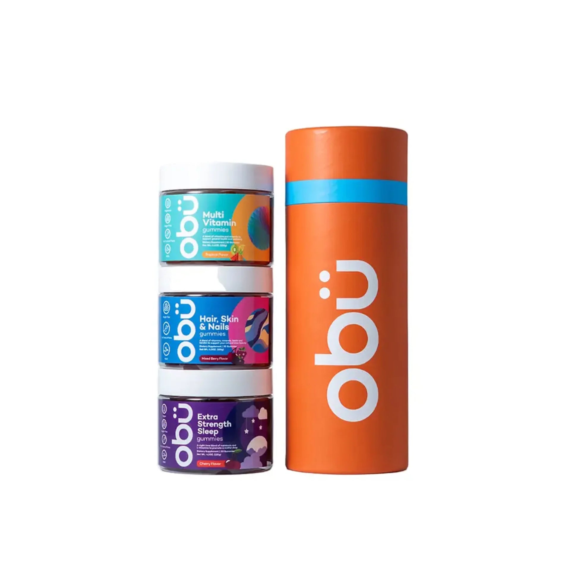 Obu Travel Kit 4 - Adult Multivitamin/ Hair Skin Nails / Sleep Cherry All 30 Gummies