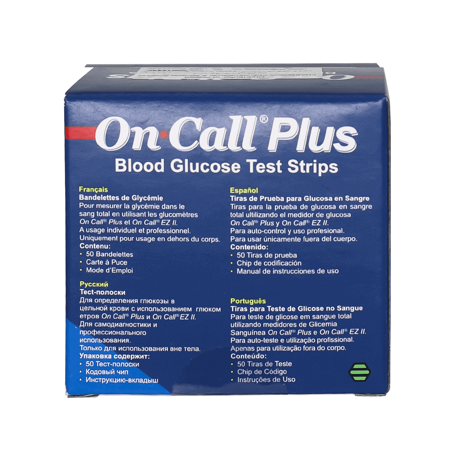 • On Call Plus Test Strips is a hassle-free product. The blood is automatically absorbed by the strip and spreads quickly across it. The system then provides a fast and accurate result.