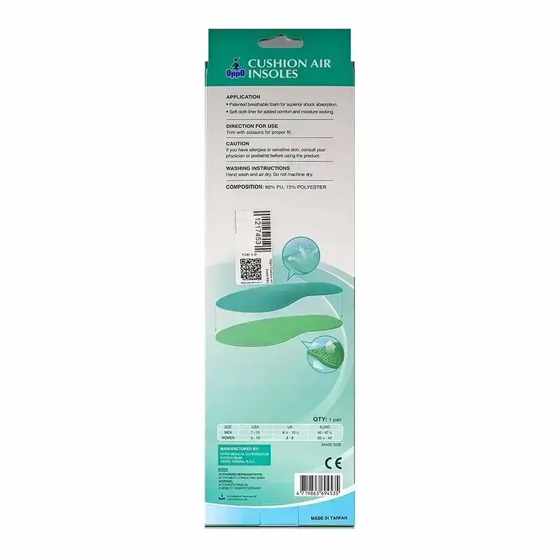 Oppo Cushion Air Insoles feature a unique airy foam cushion design that enhances the level of cushioning and support.