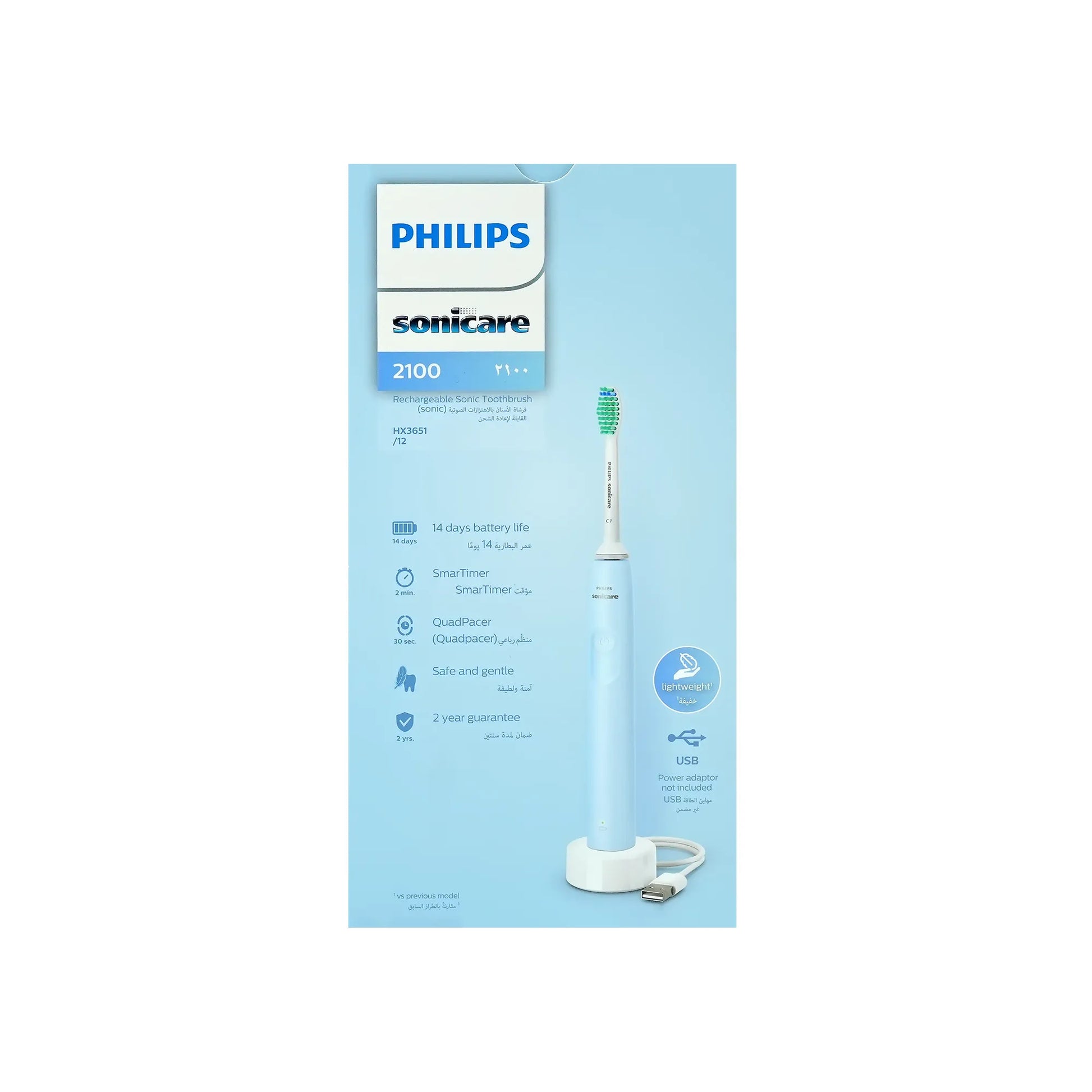 Philips Sonicare Rechargeable Sonic Toothbrush 2100 - HX3651/12