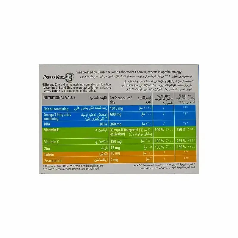 PreserVision capsules are capsules that contain vitamins and elements that support the sense of sight and maintain its normal function.The capsules mainly contain 3 groups of important elements for vision: Antioxidants, omega 3, and carotenoids.