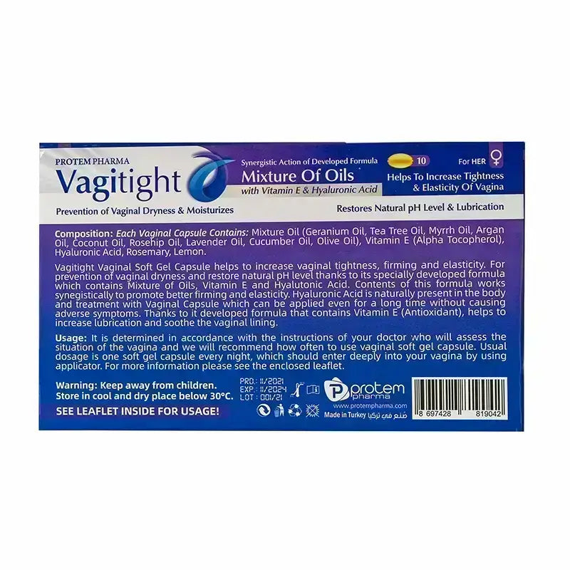• Vagitight Soft Gel Capsule lubricates and soothes the lining of the vagina.