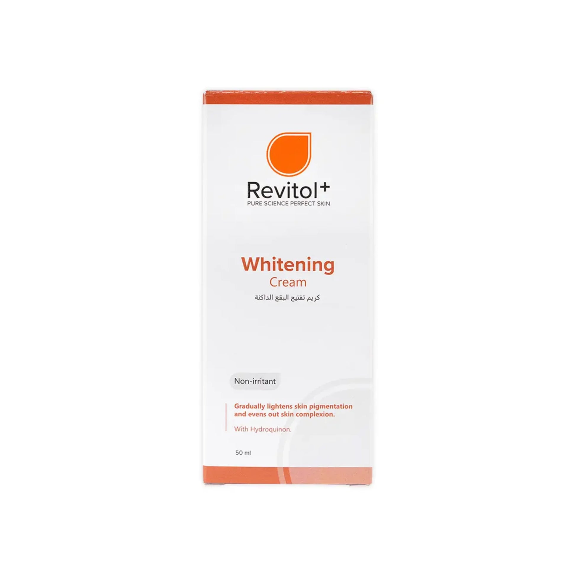 Whitening cream for hyperpigmentation in the face and body contains hydroquinone that helps to lighten the dark spots of skin.