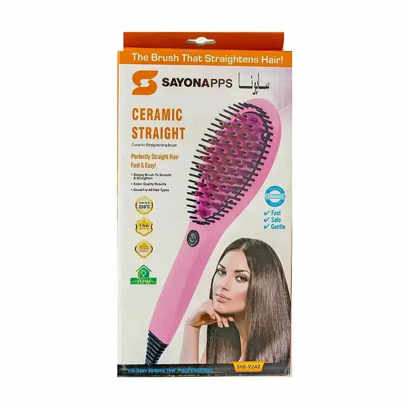 The hair-straightening Ceramic brush provides comfort, speed, and safety while straightening hair.