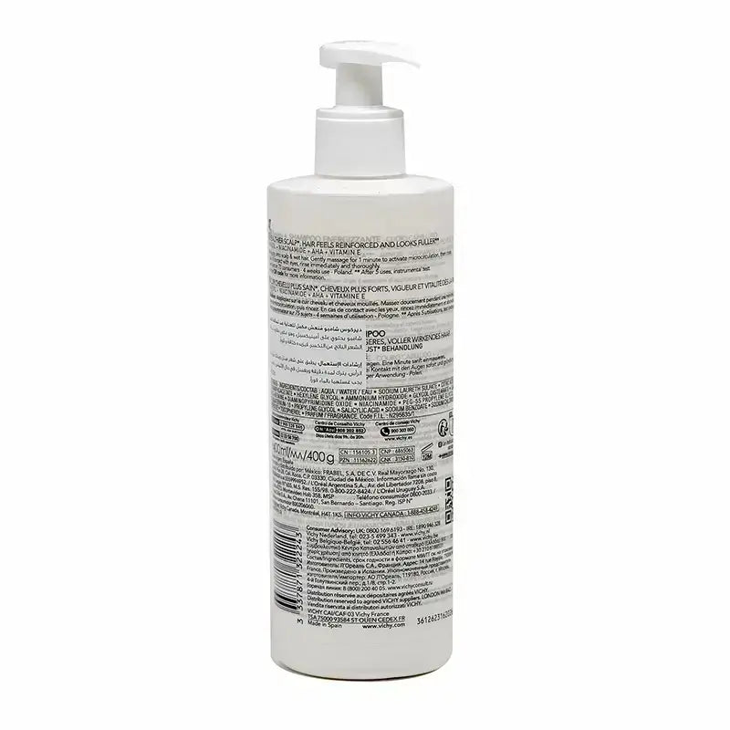 A unique formula containing Aminexil, vitamins B3 B6 and provitamin B5 that helps treat hair loss in both men and women.The presence of Aminexil in Vichy Energy+ Stimulating shampoo increases the blood flow to the hair follicles. This prevents hair loss and stimulates re-growth resulting in a longer thicker and increased number of hair.